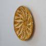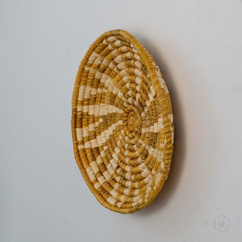 Enhance your space with this handwoven Sabai Grass Wall Basket, designed with Nordic-inspired minimalism. Its circular shape and warm yellow tones bring charm and elegance to your home decor.