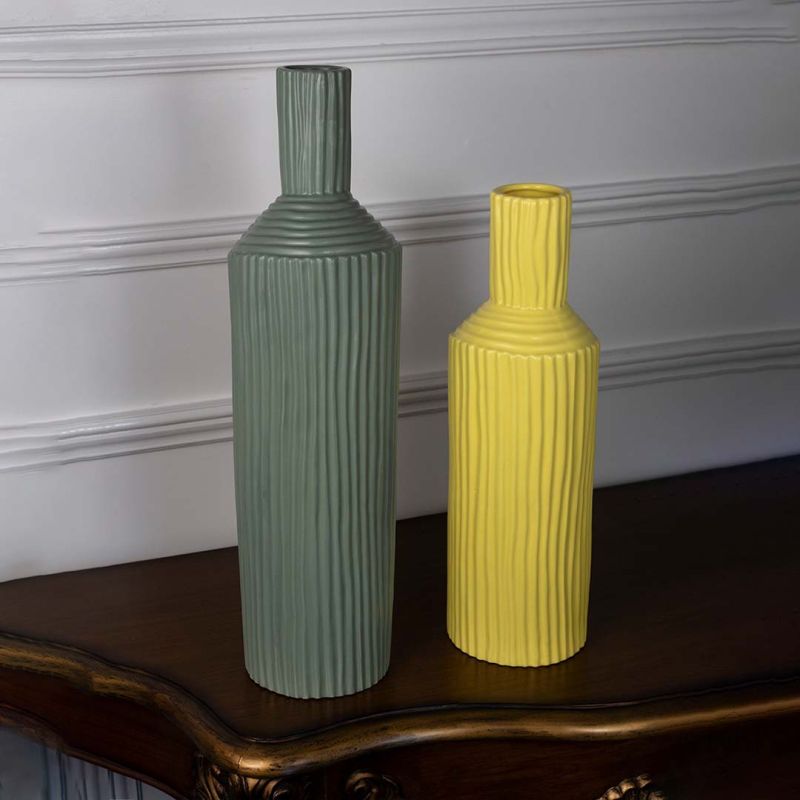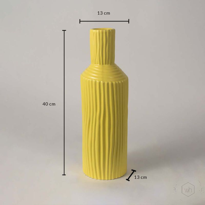 Brighten up your space with the Farina vase, showcasing a classic bottle silhouette in a vibrant yellow matte finish.