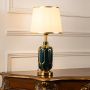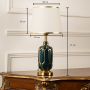 Elevate your décor with this contemporary brass and ceramic table lamp.