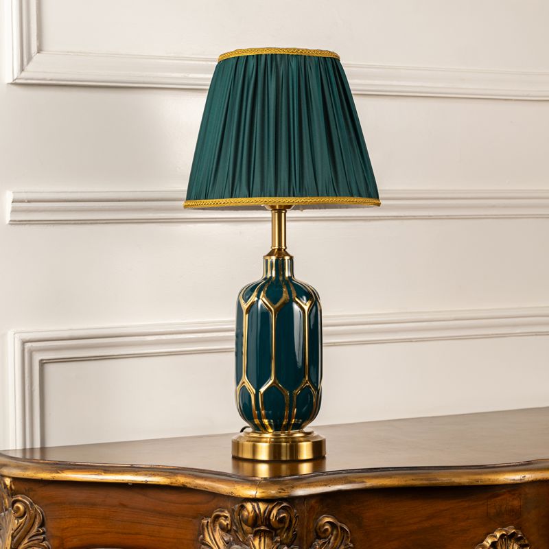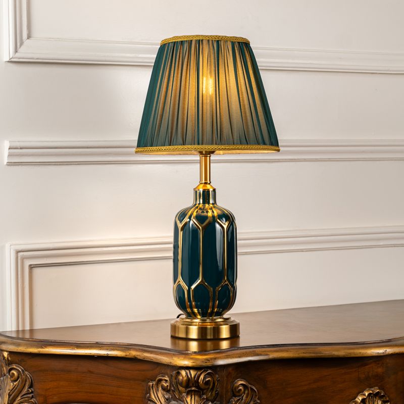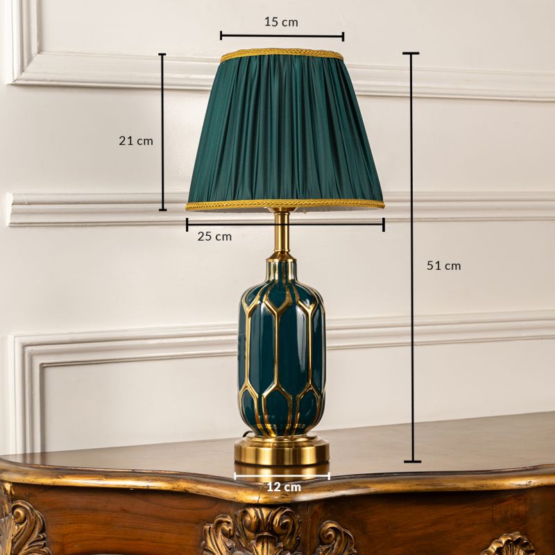 Emerald Green Ceramic Table Lamp with Pleated Shade