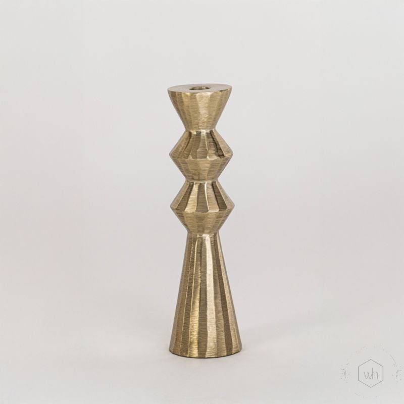 The Foundation Candle Holder in Gold showcases a bold geometric design crafted from high-quality aluminium. Its sculptural form and radiant gold finish make it a striking accent for modern or eclectic interiors. Perfect as a standalone décor piece or paired with a taper candle, it adds a touch of artistic elegance to any room.