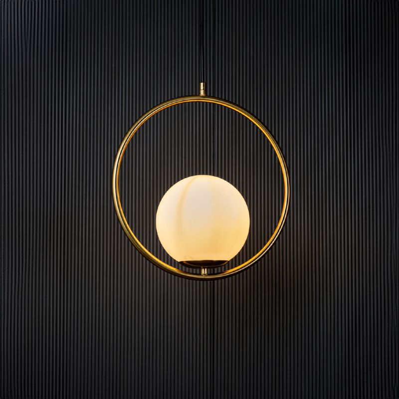 The gold ring is mainly decorative, but its metallic finish may subtly reflect light from the frosted globe, adding warmth and elegance to the ambiance.