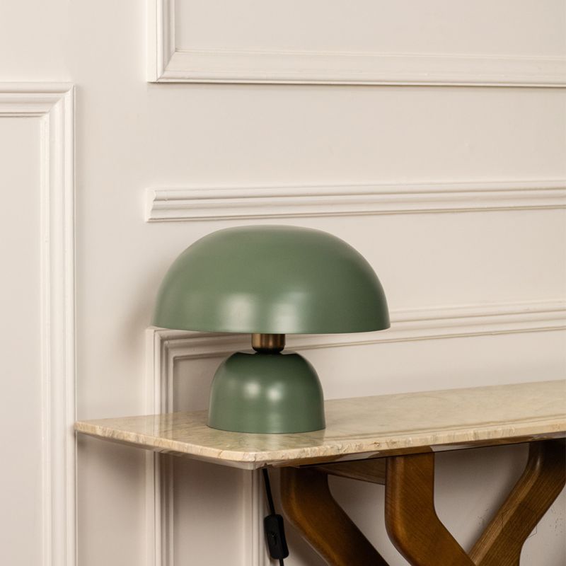 Brighten your bedroom with the Fungo Sage Metal Table Lamp, a charming choice for bedroom table lamps featuring a fresh green finish that adds a vibrant touch to your décor.
