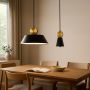 This product video highlights a bold, contemporary pendant featuring a matte black conical shade topped with a striking brass sphere. A perfect choice for kitchens, dining rooms, or modern living areas.