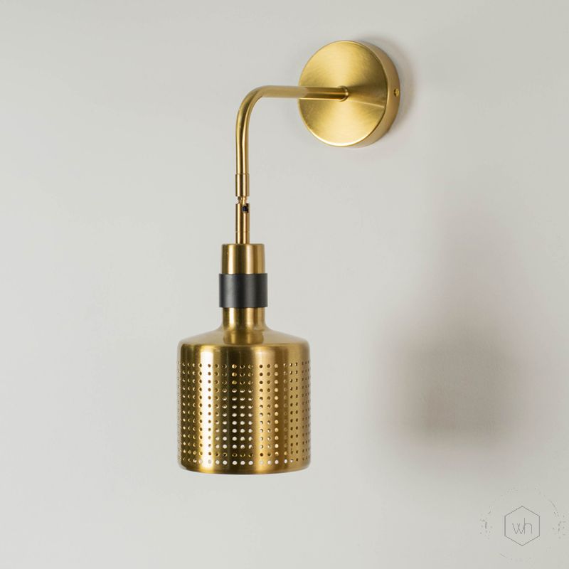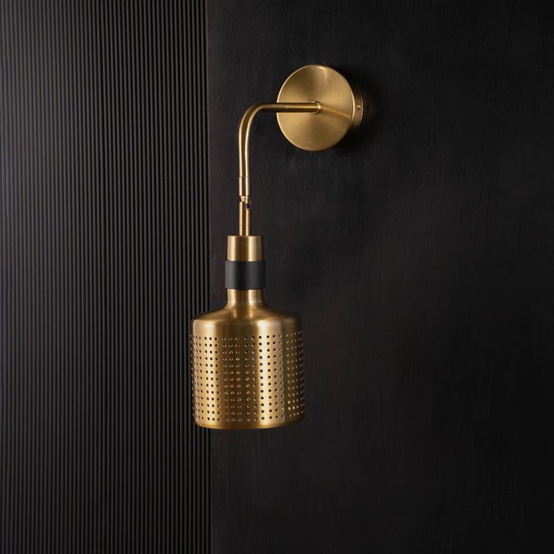 Contemporary Perforated Brass Wall Light with Black Accent