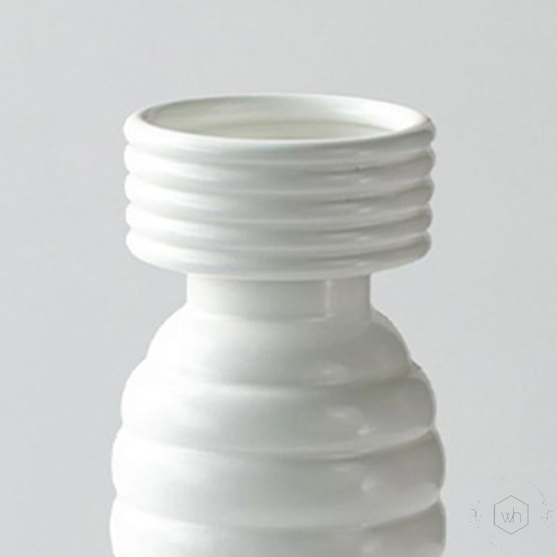 Place it against bold or contrasting backgrounds to highlight its ribbed texture and elegant white finish.