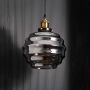 Elevate your interiors with the Grey Ribbed Glass Pendant Lamp, featuring a smoked glass shade with ripple textures and a golden metal holder. Its warm glow and sleek design bring contemporary style and sophistication to any space.