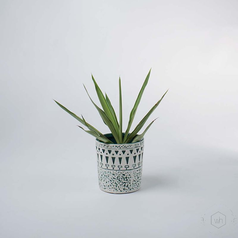 The Harley Vase - Small brings Southwest charm with its basil green and white design, perfect for adding warmth to mantles, balconies, or desks. Its wide-mouthed design is ideal for indoor or outdoor plants.
