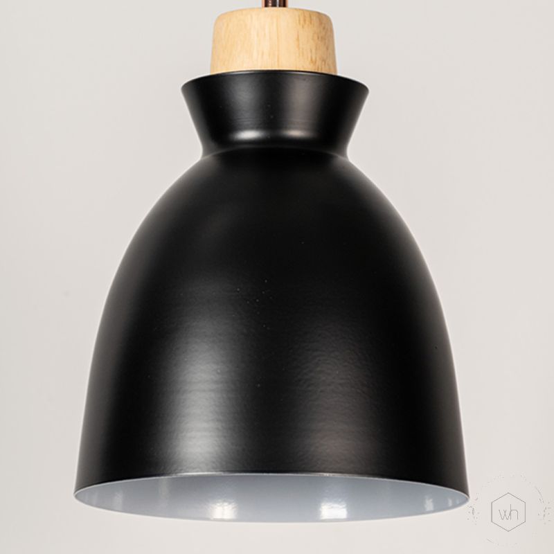 This style usually combines powder-coated metal for the shade, natural wood for the accent, and sometimes a metal or copper rod for contrast and durability.