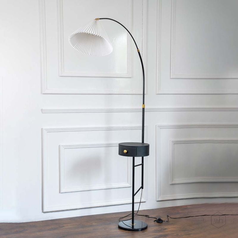 Materials: Made of sleek metallic rod and a simple cone-shaped lamp shade designed in a beautiful pleated fashion.