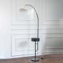 Bring vintage vibes to your living space and adorn this classic metal arch floor lamp showcasing a minimalist structure and color palette.