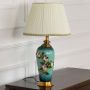 Color: Green ceramic base with hand-painted floral patterns, complemented by brass accents on the bottom and neck.