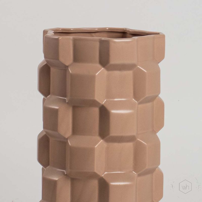 Certainly! Its geometric design and earthy brown tone provide a bold statement piece that can elevate minimalist or modern interiors.