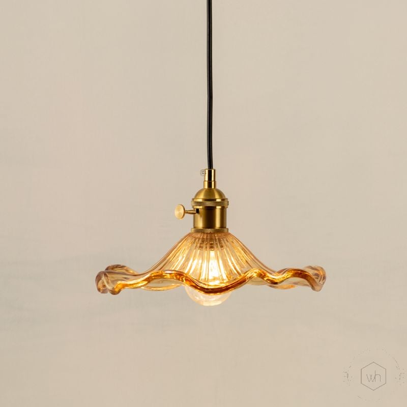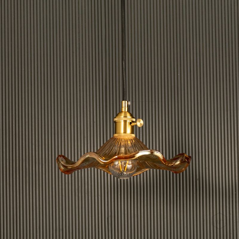 Bring warmth and elegance to your space with the Jasmine Glass Hanging Light in amber and gold, perfect for creating a cozy, inviting atmosphere.
