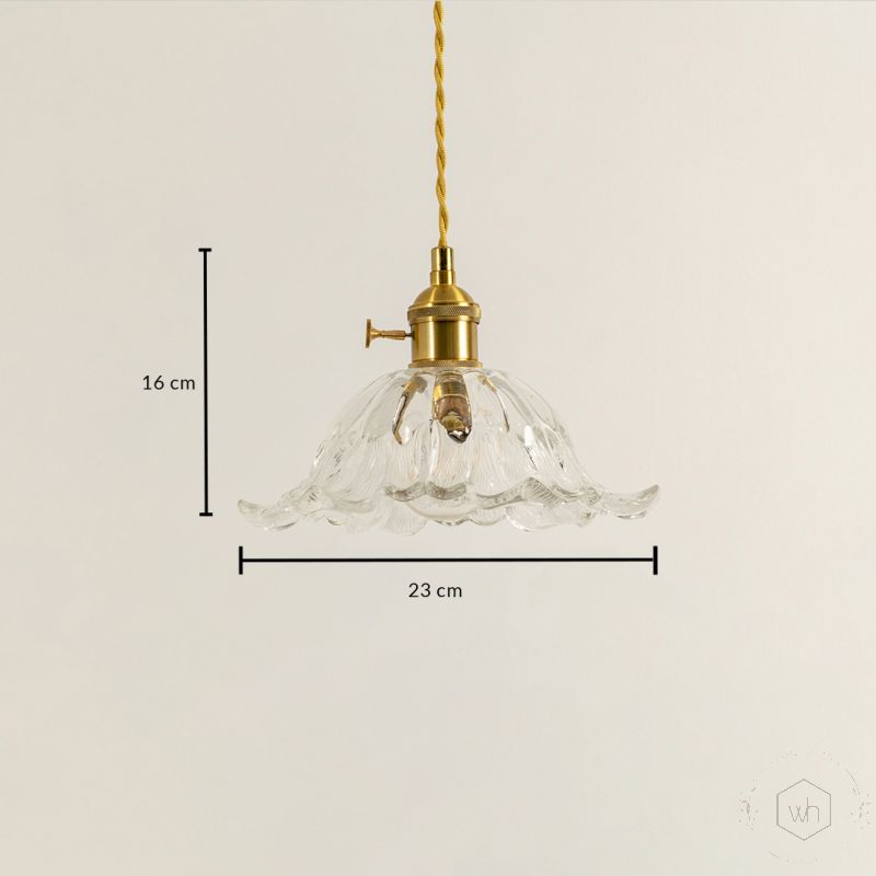 Illuminate your home with the Latica Glass Hanging Light, featuring a beautiful flower-inspired design crafted from high-quality glass. Its warm golden glow and sophisticated detailing bring elegance and charm to any room.