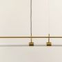 A long linear ceiling light with a slim gold bar and two hanging points producing a clean bright glow that adds a refined minimal lighting effect to the surrounding space.