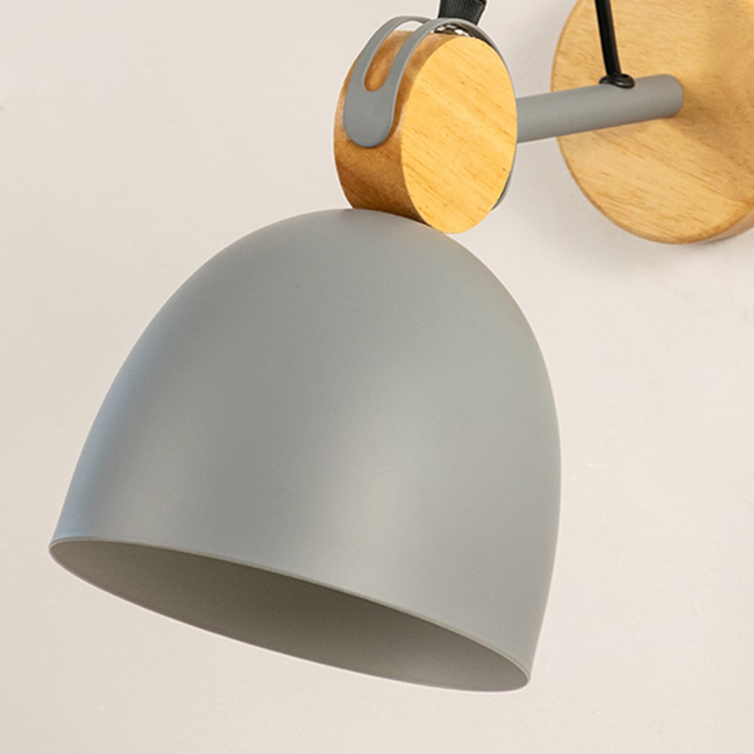 The Macaron Loft Adjustable Wall Light in grey blends modern design with functional versatility, featuring a sleek metal frame and wooden accents, ideal for contemporary spaces.