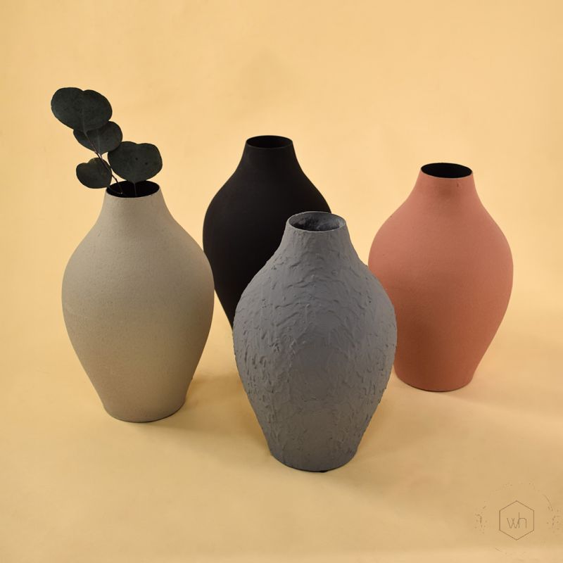 Grey textured vases pair well with neutral or monochrome interiors and can be styled with dried foliage, minimalist floral arrangements, or left empty as standalone decor.