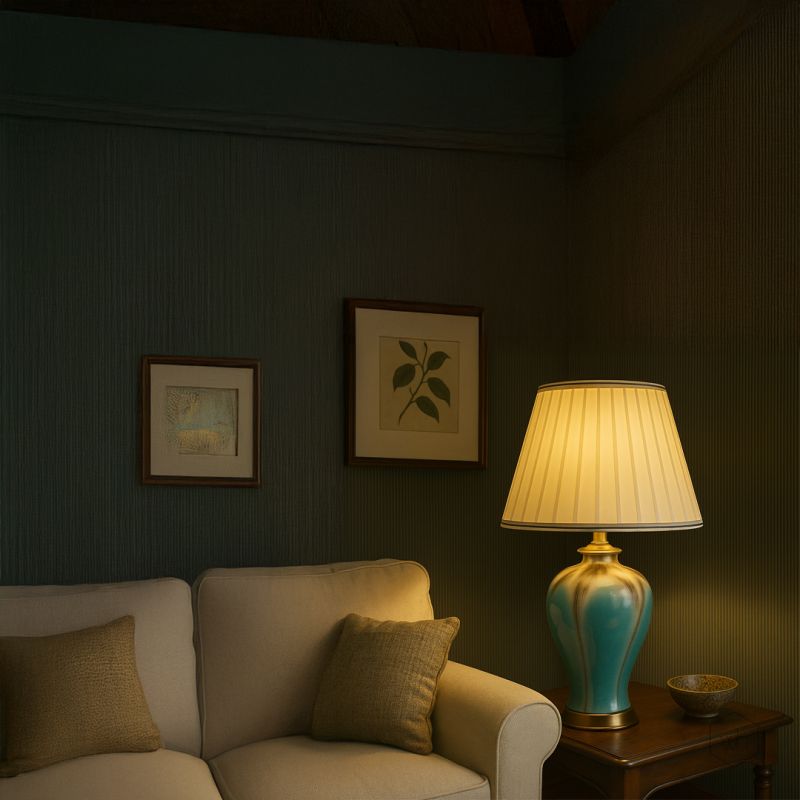 The lampshade is made of high-quality fabric, which helps diffuse light evenly for a warm and cozy ambiance.