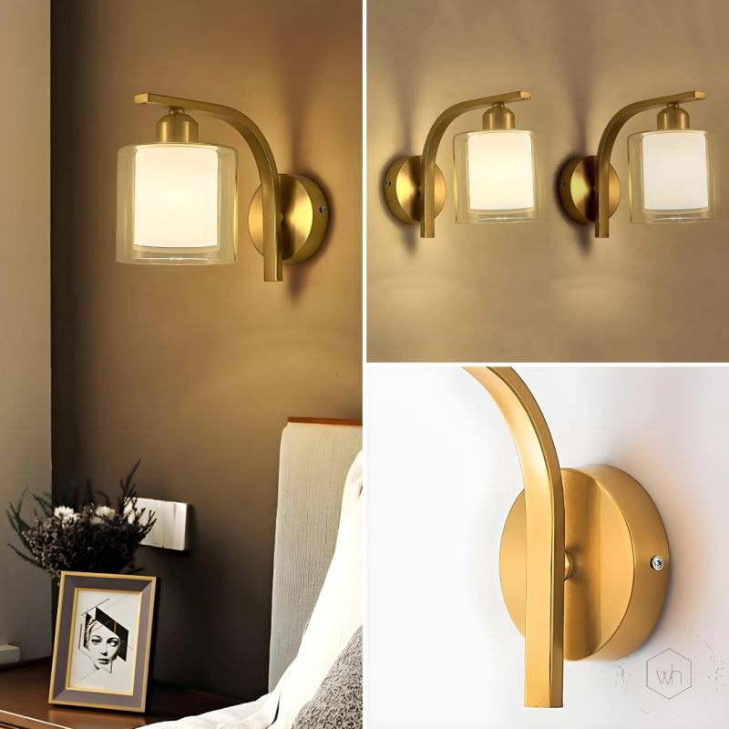 The Modern Simple Curvy Wall Lamp features a graceful curved gold metal arm paired with a double-layered glass shade, offering soft and inviting illumination. Perfect for bedrooms, hallways, or reading corners, it brings elegance and warmth to any space.