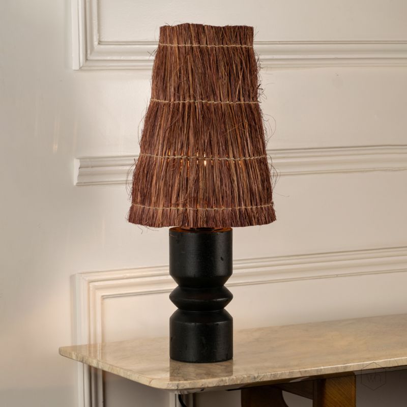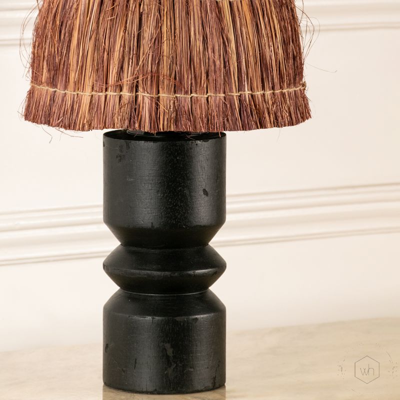 Rustic Black Lamp with Handwoven Grass Shade