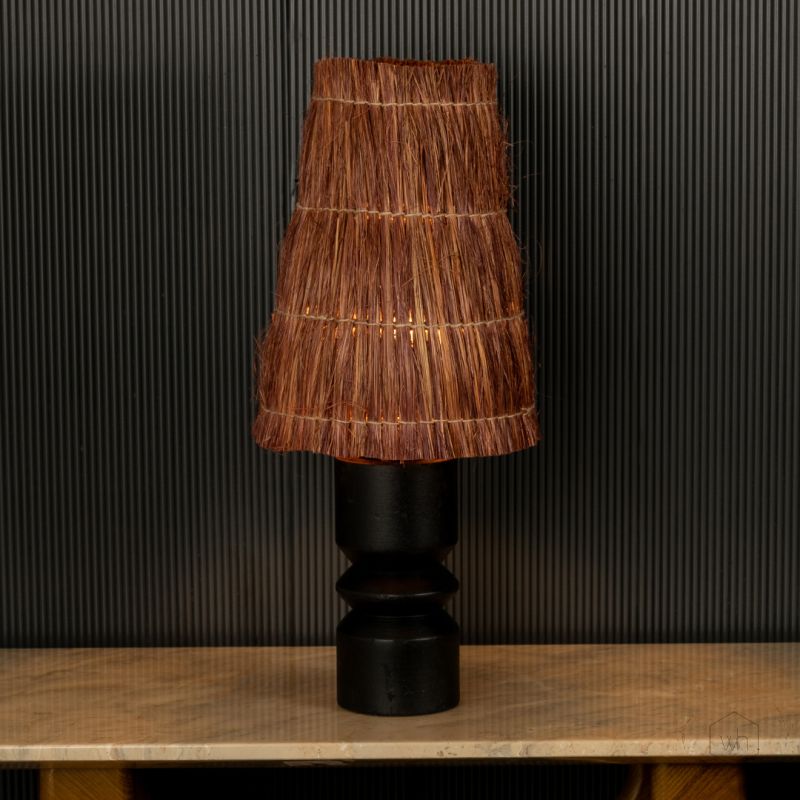 The Nativa Wooden Table Lamp offers a sleek and modern look, perfect for enhancing any room's ambiance. Its minimalist design and elegant black finish make it a versatile addition to your decor.