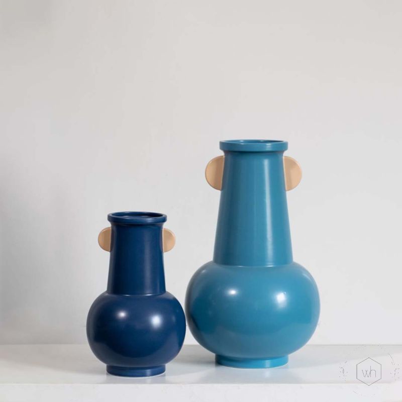 The Nicita Ceramic Vase is ideal for showcasing tall flowers and dried grasses. Crafted with a glossy matte finish in majestic blue, its round, bulky bottom provides an artistic, handmade appeal, adding eye-catching visual interest to your home decor.