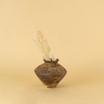 Dried flowers, pampas grass, or minimalist arrangements pair well with this vase’s rustic and organic aesthetic.