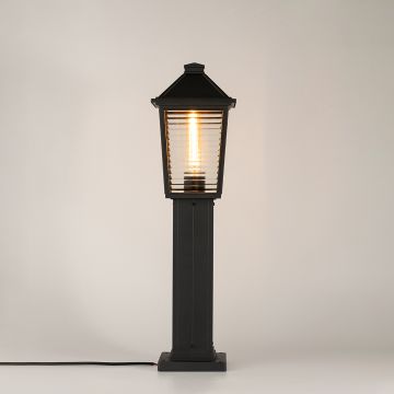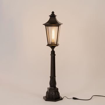 The Onset Black Outdoor Pole Light is a stylish and functional lighting solution designed to enhance the ambiance of your outdoor spaces. Crafted with a sturdy metal frame and a sleek black finish, this pole light adds a classic touch to gardens, driveways, pathways, and patios. The lantern-style top with clear glass panels ensures bright and even illumination, making it an excellent choice for both decorative and practical lighting needs.