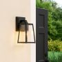 The Onset Black Outdoor Wall Light - Large is a modern and stylish lighting fixture designed to elevate the look of your outdoor spaces. Crafted with a durable metal frame and clear glass panels, this wall light ensures excellent illumination while enhancing the exterior aesthetics of your home. Its sleek black finish complements various decor styles, making it an ideal choice for patios, entryways, and garden pathways.