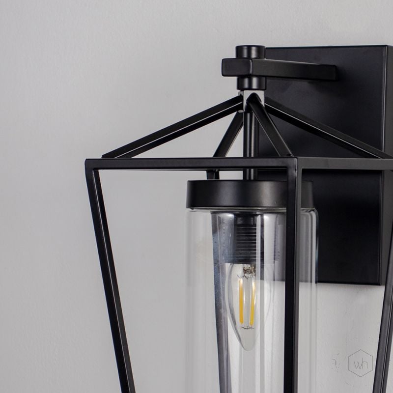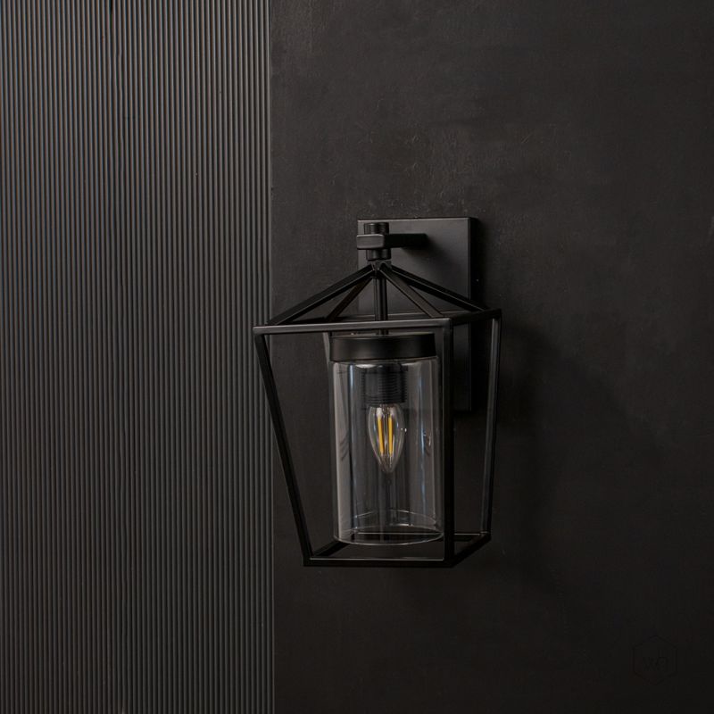 This product video showcases a modern lantern-style wall sconce featuring a structured black metal frame and a cylindrical inner glass shade. As the bulb glows to life, light casts warm reflections within the geometric silhouette. Close-ups highlight the crisp angles and timeless-meets-modern charm—perfect for transitional or contemporary spaces.