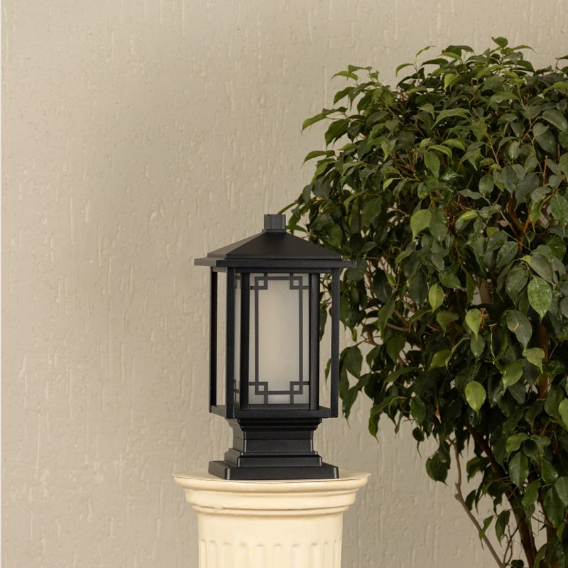 Design: Contemporary gate light featuring glass panels, offering a soft, welcoming glow