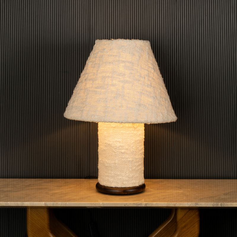 Cozy up your space with this charming table lamp, wrapped entirely in soft, boucle-like fabric from base to shade. Its neutral palette and tactile surface offer a warm, organic feel, perfect for relaxed and earthy interiors. The video captures the subtle elegance of the lamp’s fabric finish with close-up details and ambient lighting.