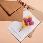 To preserve its charm, keep the card in a dry place away from direct sunlight and moisture, ensuring the dried flowers remain intact and vibrant for years with proper care.