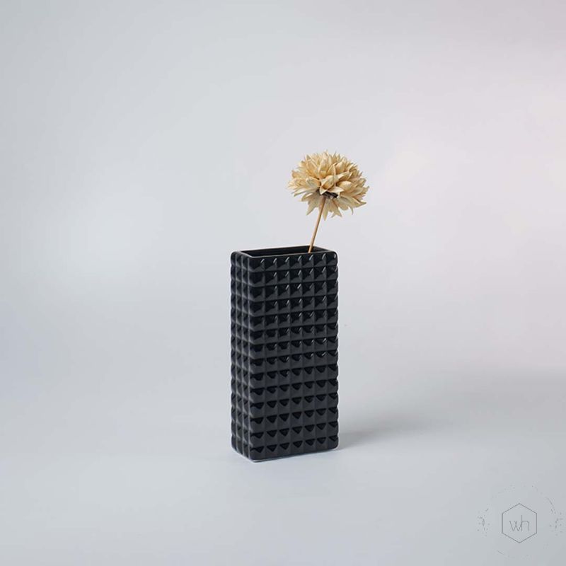 This vase is made from premium ceramic with a sleek, textured finish that enhances its modern appeal.