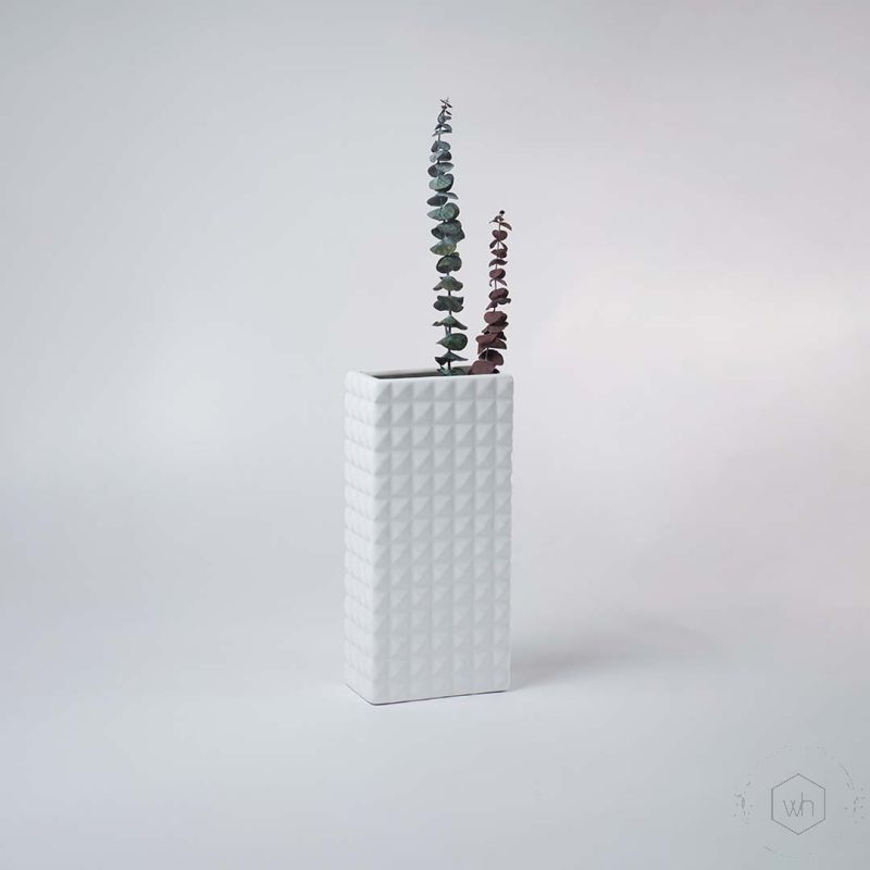 Inspired by elegance and crafted with care, the Piura Vase White - Large features a glossy matte finish and cuboidal silhouette, perfect for showcasing dry flowers or enhancing any space with its artistic charm.