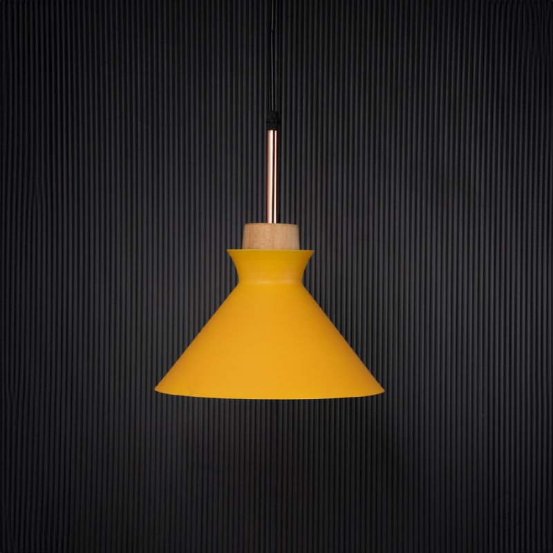 This pendant works well in eclectic, mid-century modern, retro, or Scandinavian interiors where playful color and simple shapes are embraced.