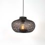 This rounded form looks best when hung 28–34 inches above surfaces or head height, so standard or slightly higher ceilings work best.