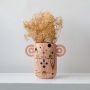 This blush-toned ceramic vase stands out with its artistic handles and geometric patterns. Paired with golden baby's breath, it brings both charm and character to your space.