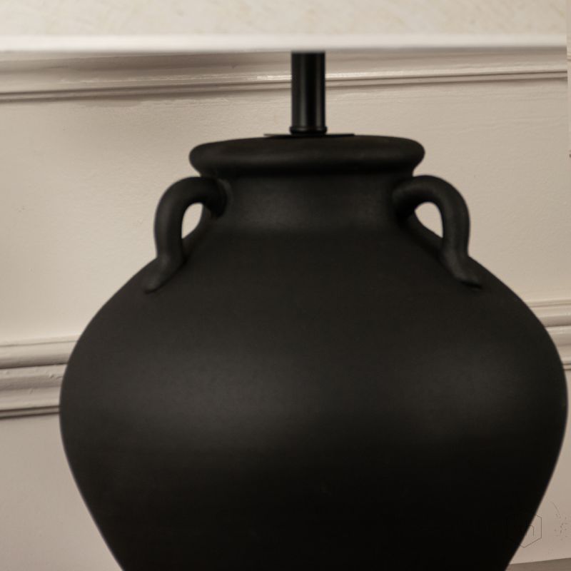 The video captures the sculptural elegance of this matte black table lamp with smooth on/off transitions and zoom-in and zoom-out views. Its urn-inspired base with looped handles and crisp white shade create a striking silhouette that blends classical form with contemporary refinement.