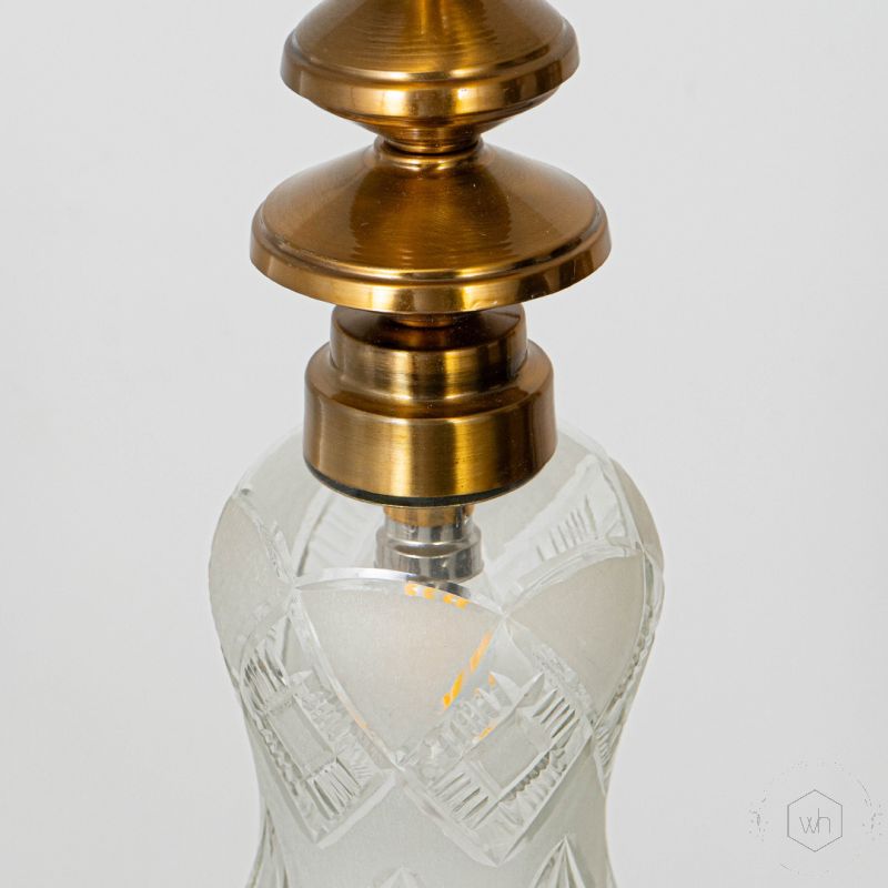 - Frosted glass shade with ornate etched detailing and scalloped edges