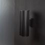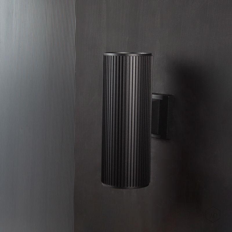 The Ribbed Cylindrical Wall Light - Large features a sleek design with up and downlight options, perfect for enhancing the exterior of any building.