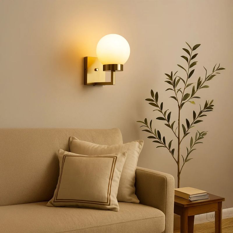 Soft Glow, Modern Form: Globe Brass Wall Light