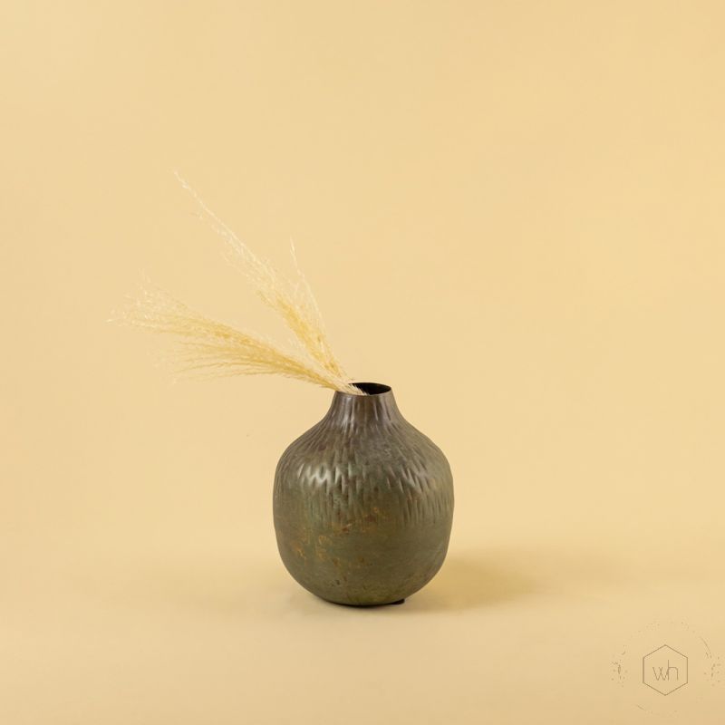 A striking metal vase that pays homage to the rich heritage of the Indus Valley Civilization. It features a broad, stable base that gracefully tapers upward, culminating in a slightly flared rim. This shape not only provides visual balance but also references the advanced understanding of form and function prevalent in Indus craftsmanship.