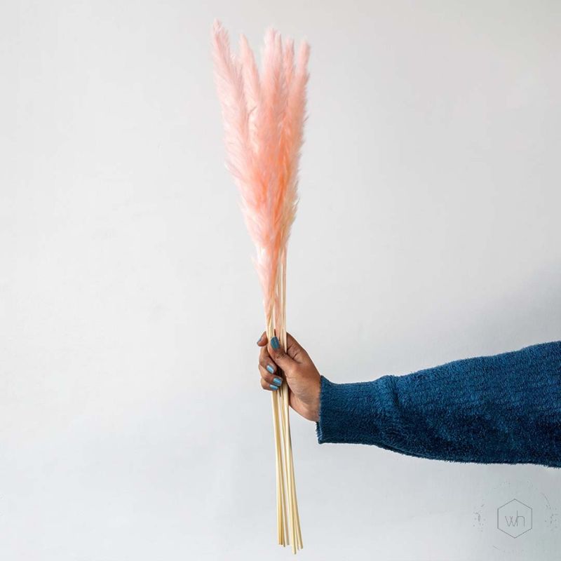 The pink blush of fluffy sorghum-dried grass is worth experimenting with in your home decor.