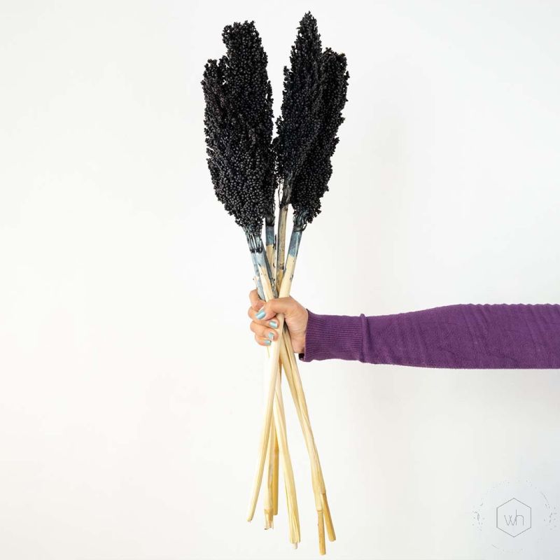 Make a striking statement with black sorghum dried grass. Its bold hue and unique texture add depth and a contemporary edge to any interior space.