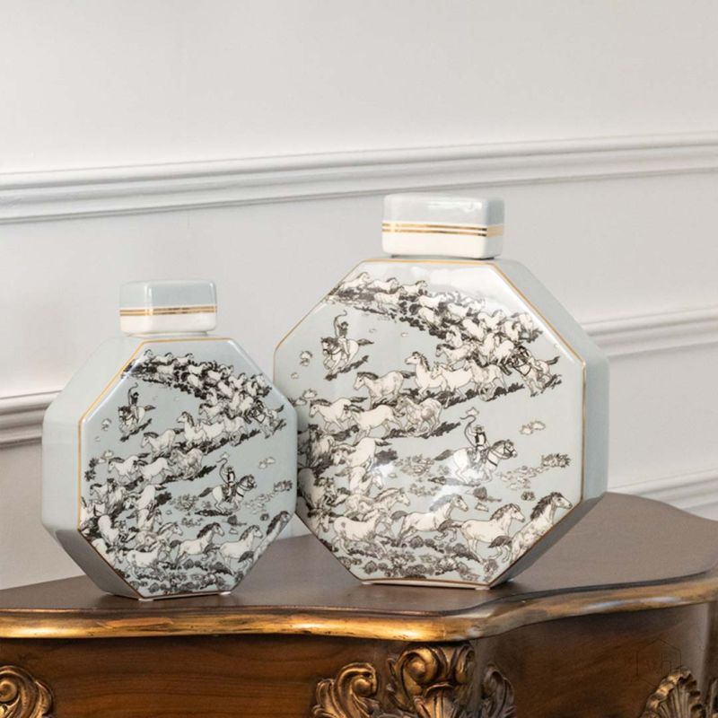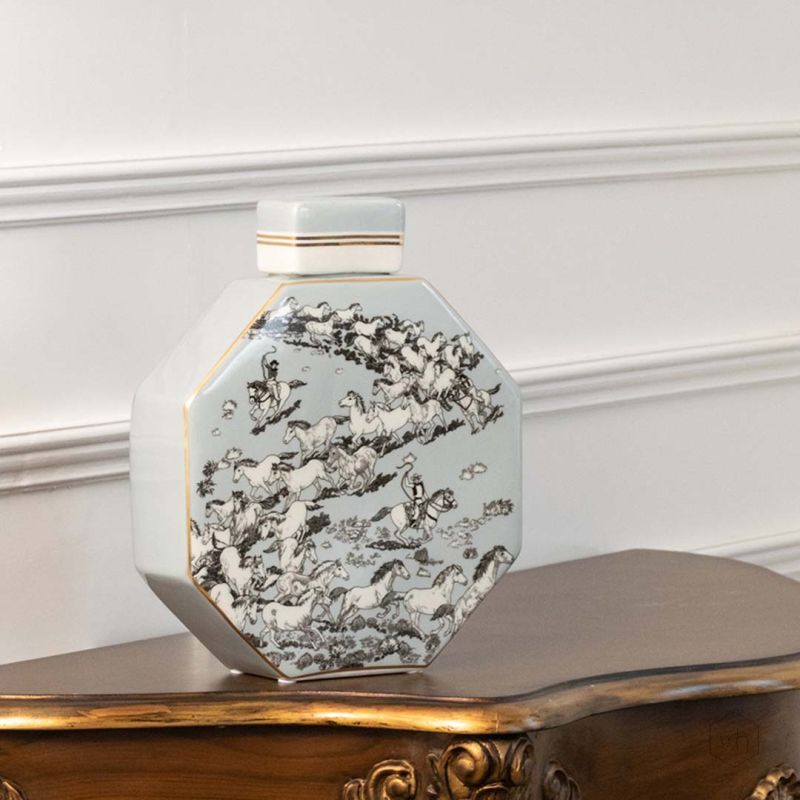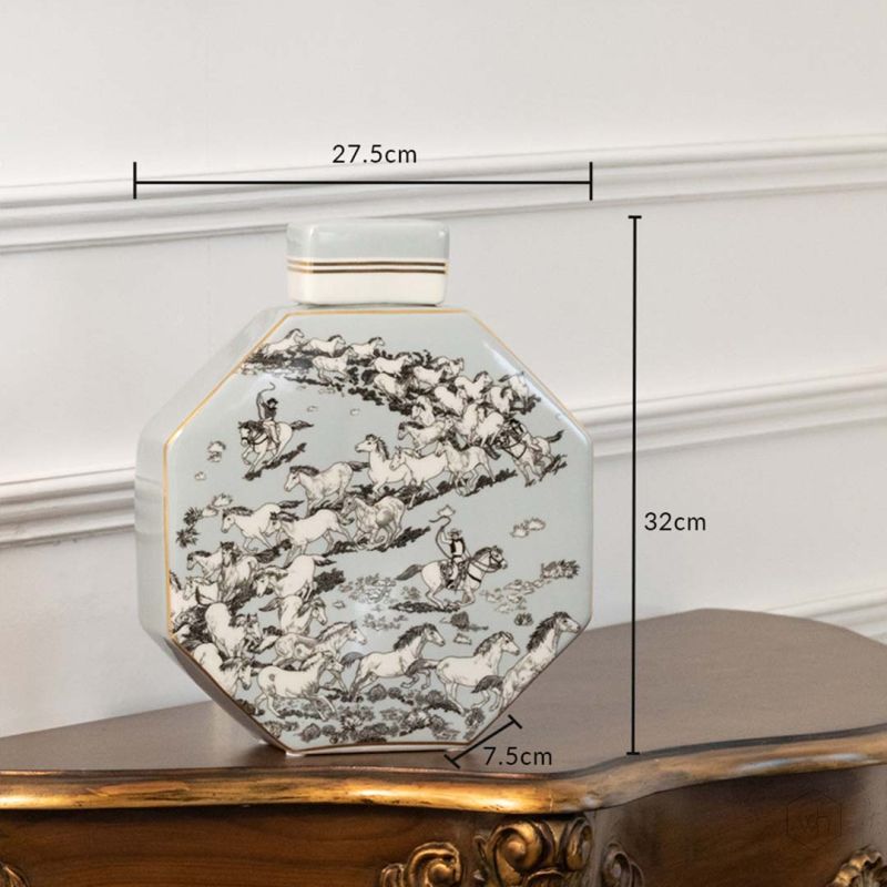 This jar stands out due to its intricate artwork, octagonal shape, and luxurious detailing, making it a statement piece rather than just a functional vase.