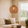 Illuminate your space with the Sunwoven Orb Bamboo Pendant, crafted in a perfect circle resembling the sun, handwoven by skilled craftspeople from natural bamboo to create a unique round shade.