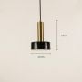 A collage of lifestyle shots closeups and dimension views of the gold and white glass pendant light offering a complete design overview.