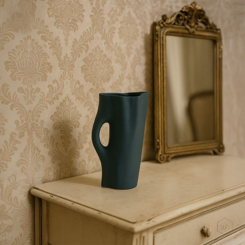 To highlight its rich blue color and artistic silhouette, place the vase near natural light or use soft, warm artificial lighting for a sophisticated ambiance.